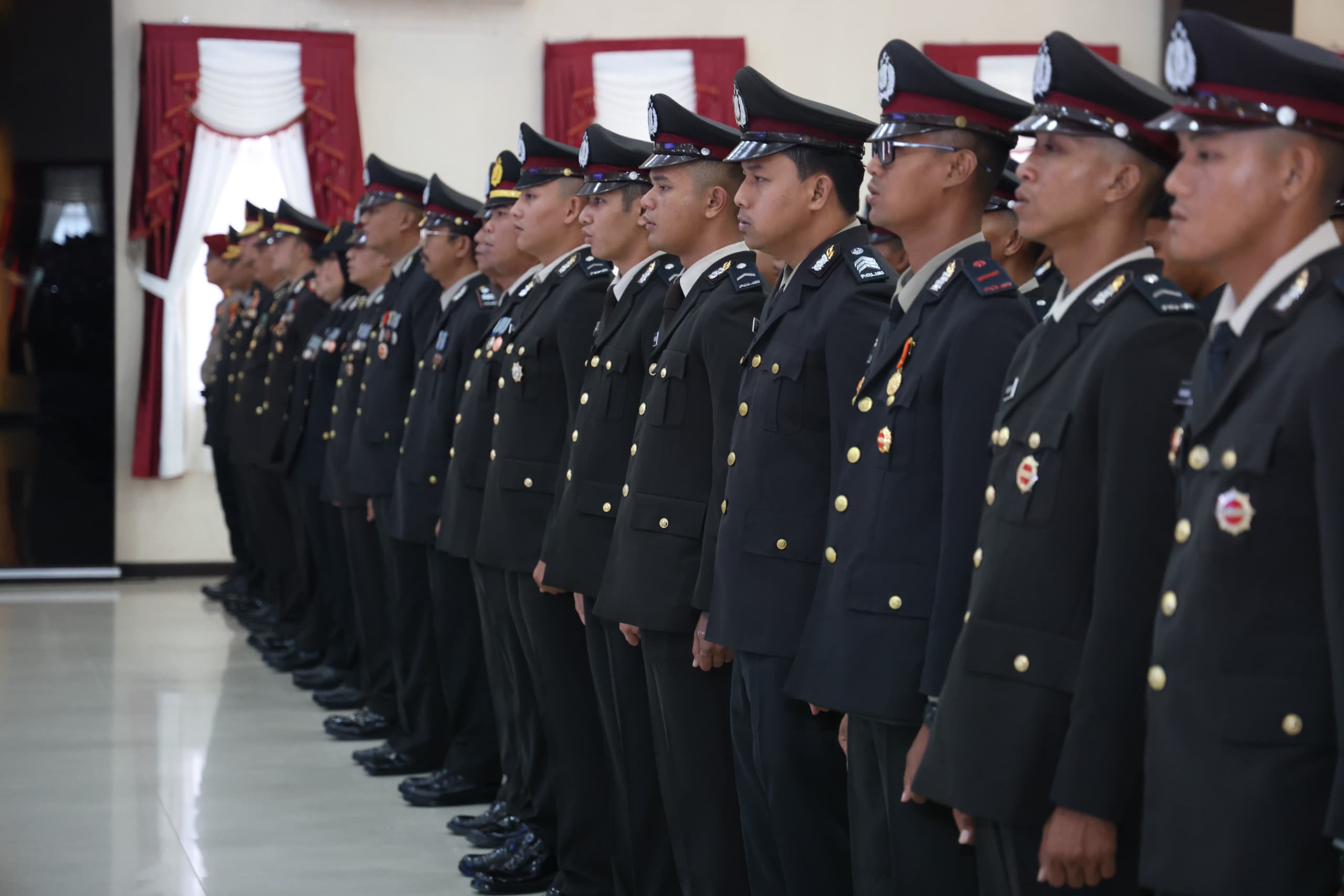 Upacara yang berlangsung khidmat tersebut dipimpin oleh Wakapolda Kepri Brigjen. Pol. Dr. Anom Wibowo, S.I.K., M.Si., serta dihadiri oleh para Pejabat Utama Polda Kepri, dan para personel penerima tanda kehormatan.
