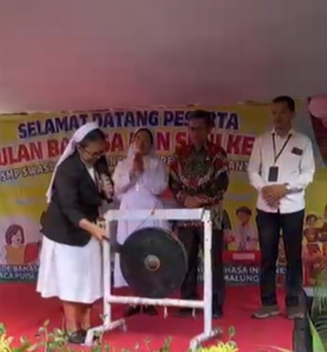 Ketua Panitia Lomba Bahasa dan Seni, Erri K Sinaga SPd Gr mengucapkan puji dan syukur atas terlaksananya lomba bulan bahasa dan seni ke 2 dengan tema Bangga berbahasa, Bebas Berkarya.