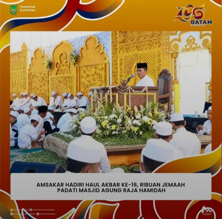 Moranews Batam – Wali Kota Batam, Amsakar Achmad, menghadiri Haul Akbar Batam Ke-16 yang diselenggarakan Majelis Zikir Al-Khidmah di Masjid Agung Raja Hamidah, Batamcentre, Minggu (28/12/2025).