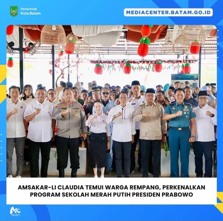 Moranews Batam – Wali Kota Batam, Amsakar Achmad, bersama Wakil Wali Kota Batam, Li Claudia Chandra, menemui warga Rempang untuk menyosialisasikan Program Sekolah Terintegrasi Merah Putih, program strategis nasional Presiden Republik Indonesia, Prabowo Subianto, yang bertujuan menghadirkan akses pendidikan berkualitas dan merata bagi masyarakat pra sejahtera, Selasa (27/1/2026).