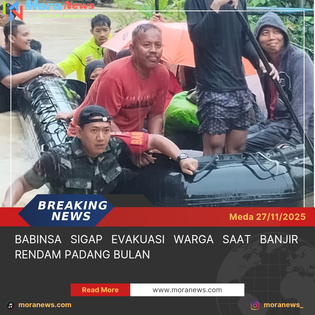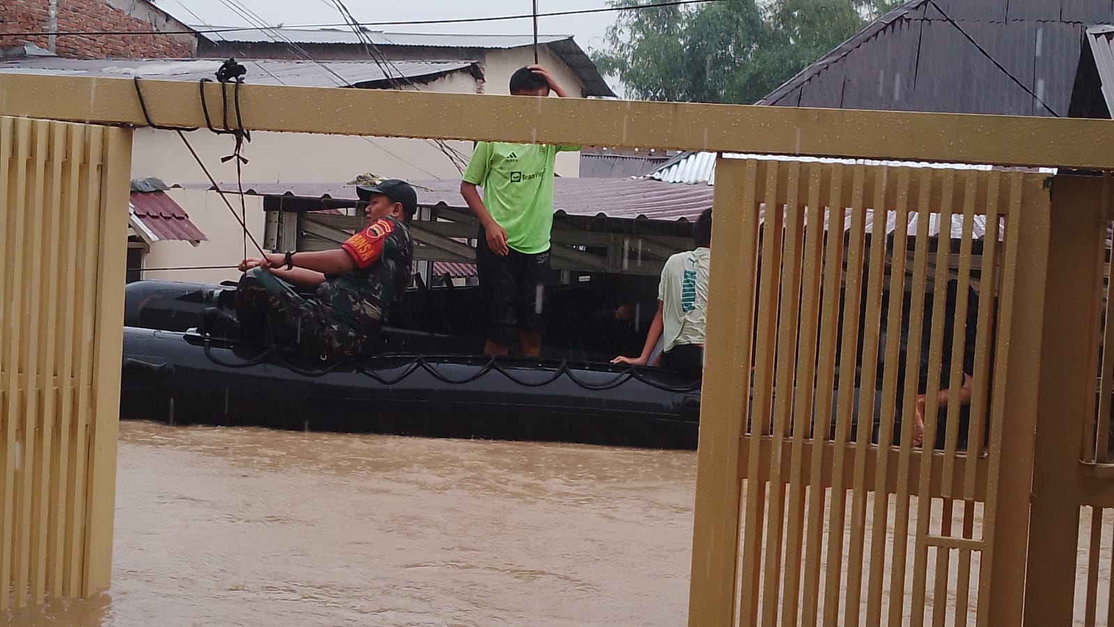 Di tengah kondisi tersebut, Babinsa Koramil 0201-05/MB, Endi T, turun langsung ke lokasi banjir untuk mengevakuasi warga. Dalam foto yang beredar, tampak Endi bersama Kepling 1,3 Padang Bulan serta Kasitrantib kelurahan bergerak menggunakan perahu karet, menjemput warga yang terjebak air luapan.