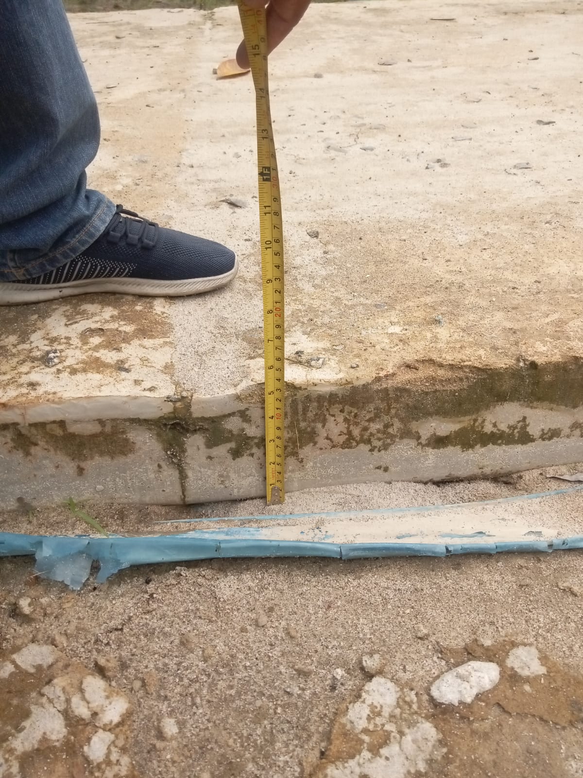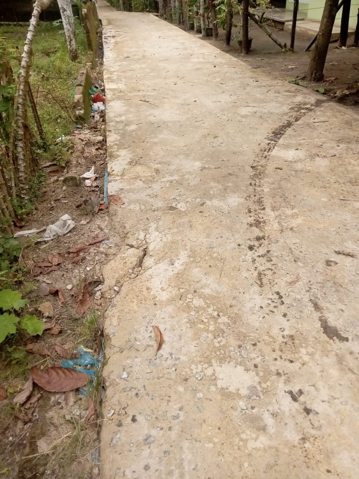 yaitu, sudah retak di beberapa titik dan terkelupas diduga campuran material tidak sesuai dengan rencana anggaran belanja (RAB) serta ketebalannya hanya 5 centimeter.