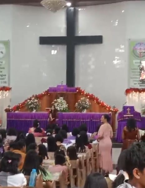Acara ibadah perayaan Natal yang diawali dengan barisan prosesi, penyalaan lilin serta diisi dengan liturgi, puisi, koor, vocal solo, tari-tarian dan vocal group berlangsung penuh hikmat dan sukacita.(Tn)
