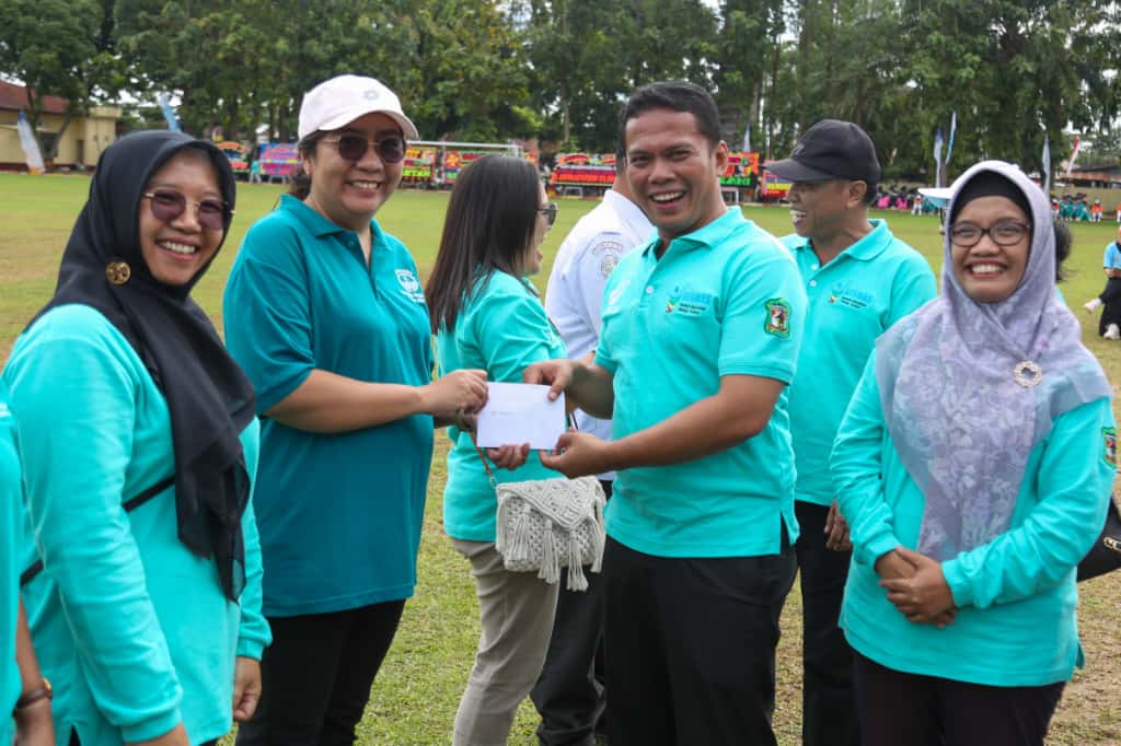 Menyerahkan Hadiah: Sekda Pematangsiantar, Junaedi A Sitanggang didampingi Kadis Kesehatan, drg Irma Suryani menyerahkan hadiah, Rabu (12/11/2025).(Foto : Tn)