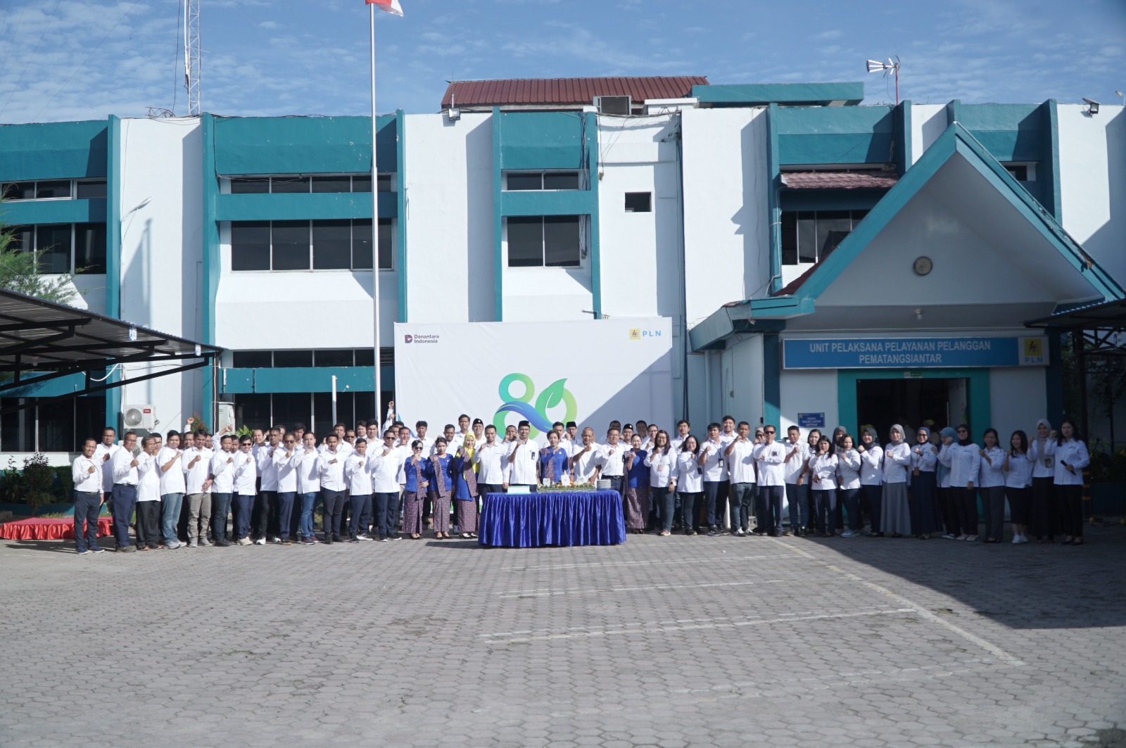 Foto bersama: Seluruh Pegawai PLN UP3 Pematangsiantar foto bersama dengan Manager, Ramses Manalu dalam rangka memperingati Hari Listrik Nasional (HLN) ke-80 tahun 2025, Senin(27/10/2025).(Tn)
