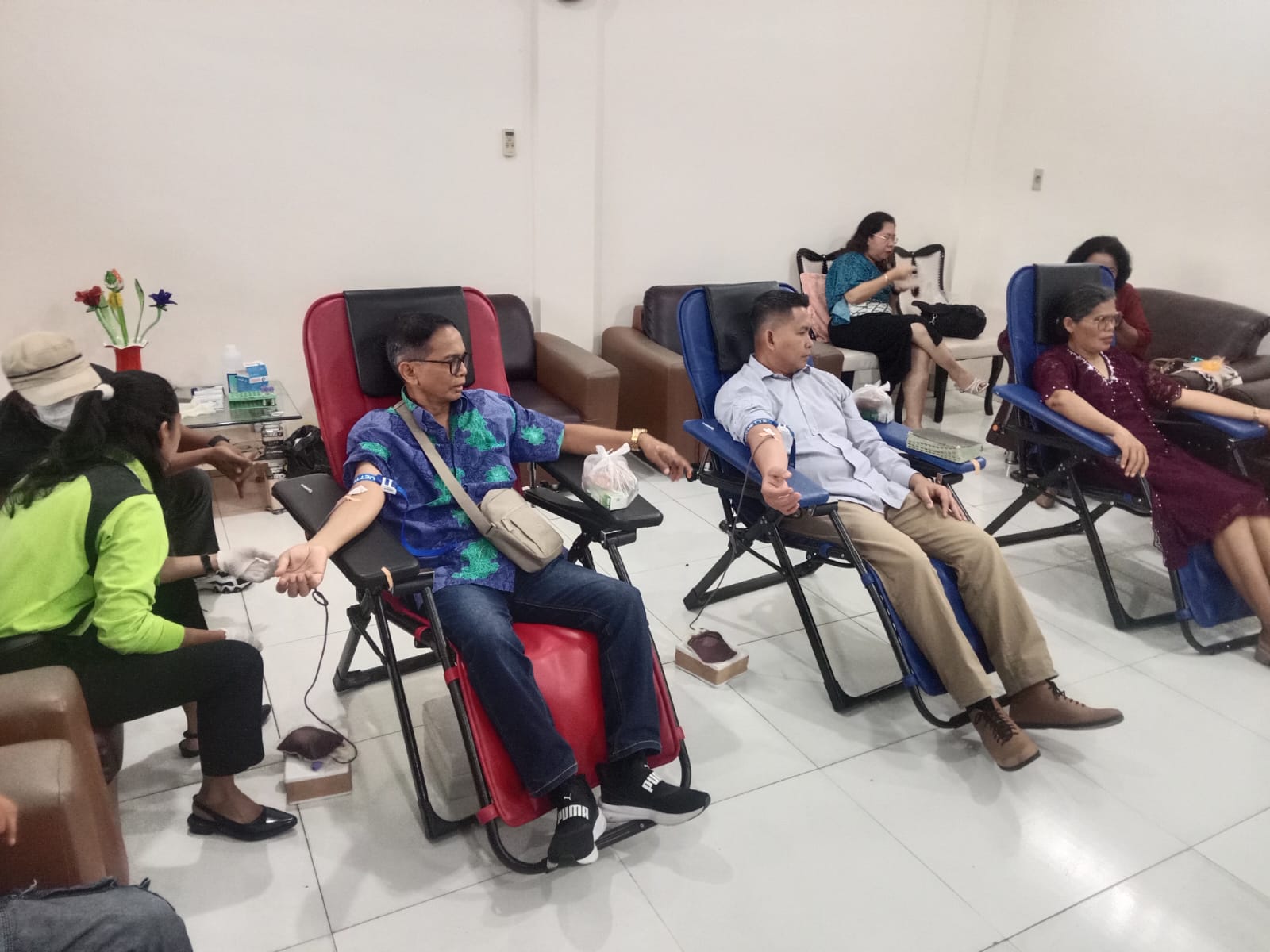 Jemaat GBI House Of Mercy (HOM) mengikuti kegiatan donor darah usai ibadah, Minggu(30/11/2025).