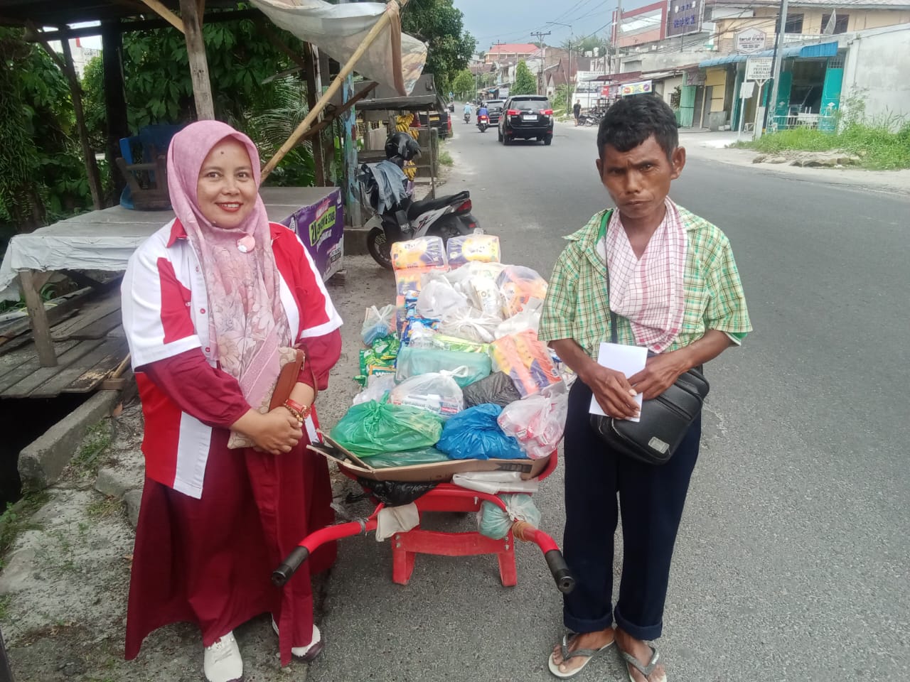 Motanews-Pematangsiantar -Rumah Aspirasi Sahabat (RAS) H Novri Ompusunggu menyantunk seorang pedagang keliling di Pematangsiantar pada momen jumat berkah,Jumat(26/9).