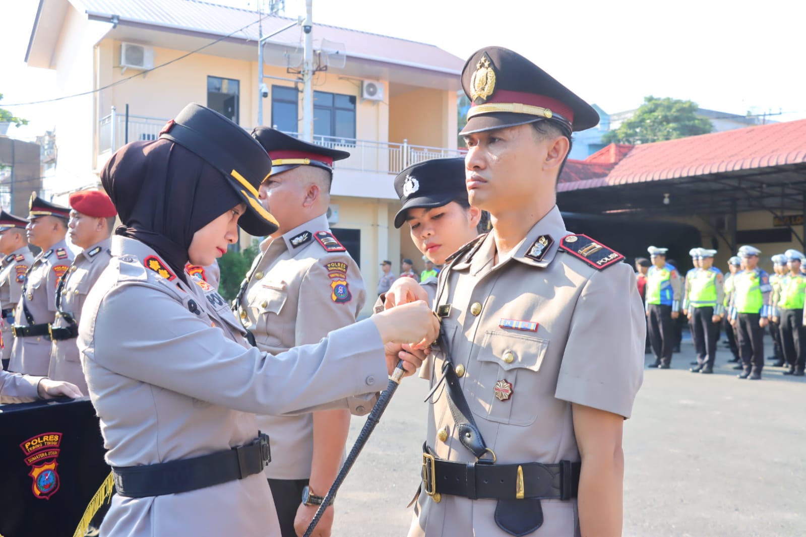 Moranews Tebing Tinggi — Kapolres Tebing Tinggi, AKBP Rina Frillya, S.I.K., memimpin langsung upacara Serah Terima Jabatan (Sertijab) Kasat Reskrim, Kasat Intelkam dan Kapolsek Sipispis yang dilaksanakan di Lapangan Apel Polres Tebing Tinggi, Senin pagi (20/4/2026).