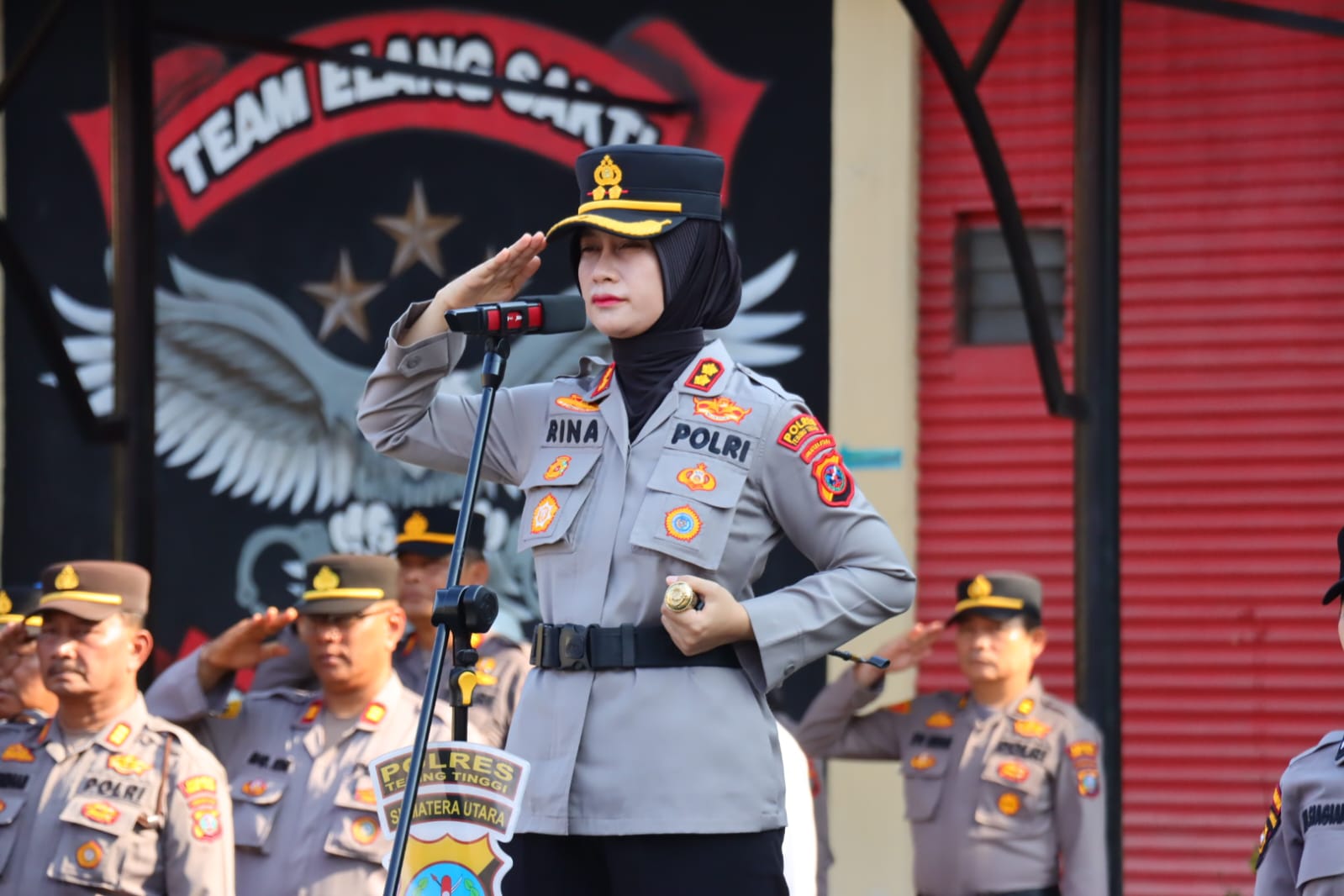 Upacara dihadiri oleh Wakapolres Tebing Tinggi Kompol Rudi Syahputra, S.Kom., pejabat utama dan seluruh personel Polres Tebing Tinggi serta Bhayangkari Cabang Tebing Tinggi.