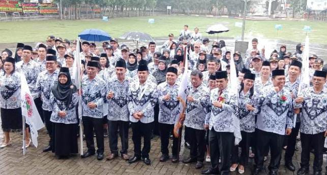 Moranews-Pematangsiantar-Ketua PGRI Pematangsiantar, Drs Risbon Sinaga MM melantik Pengurus PGRI Kecamatan pada Puncak Peringatan Hari Guru Nasional dan PGRI ke-80 tahun 2025, Kamis (27/11/2025).