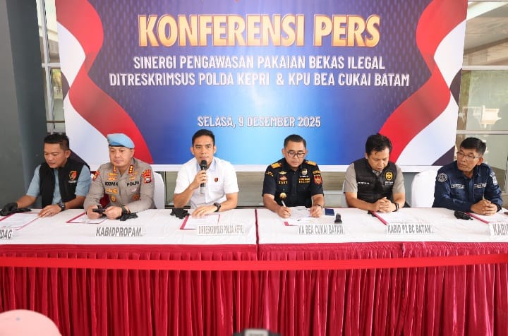 Moranews Batam – Direktorat Reserse Kriminal Khusus (Ditreskrimsus) Polda Kepulauan Riau telah melakukan penindakan hukum terhadap kegiatan impor pakaian bekas ilegal yang berasal dari Singapura. Kegiatan ini merupakan komitmen Polda Kepri dalam mendukung kebijakan pemerintah yang melarang impor pakaian bekas karena berdampak negatif terhadap perekonomian nasional dan mengancam keberlangsungan industri garmen serta UMKM dalam negeri. Selasa (9/12/2025).