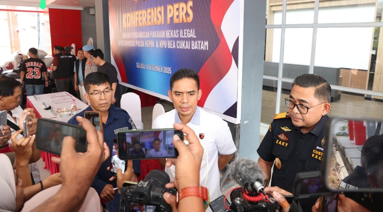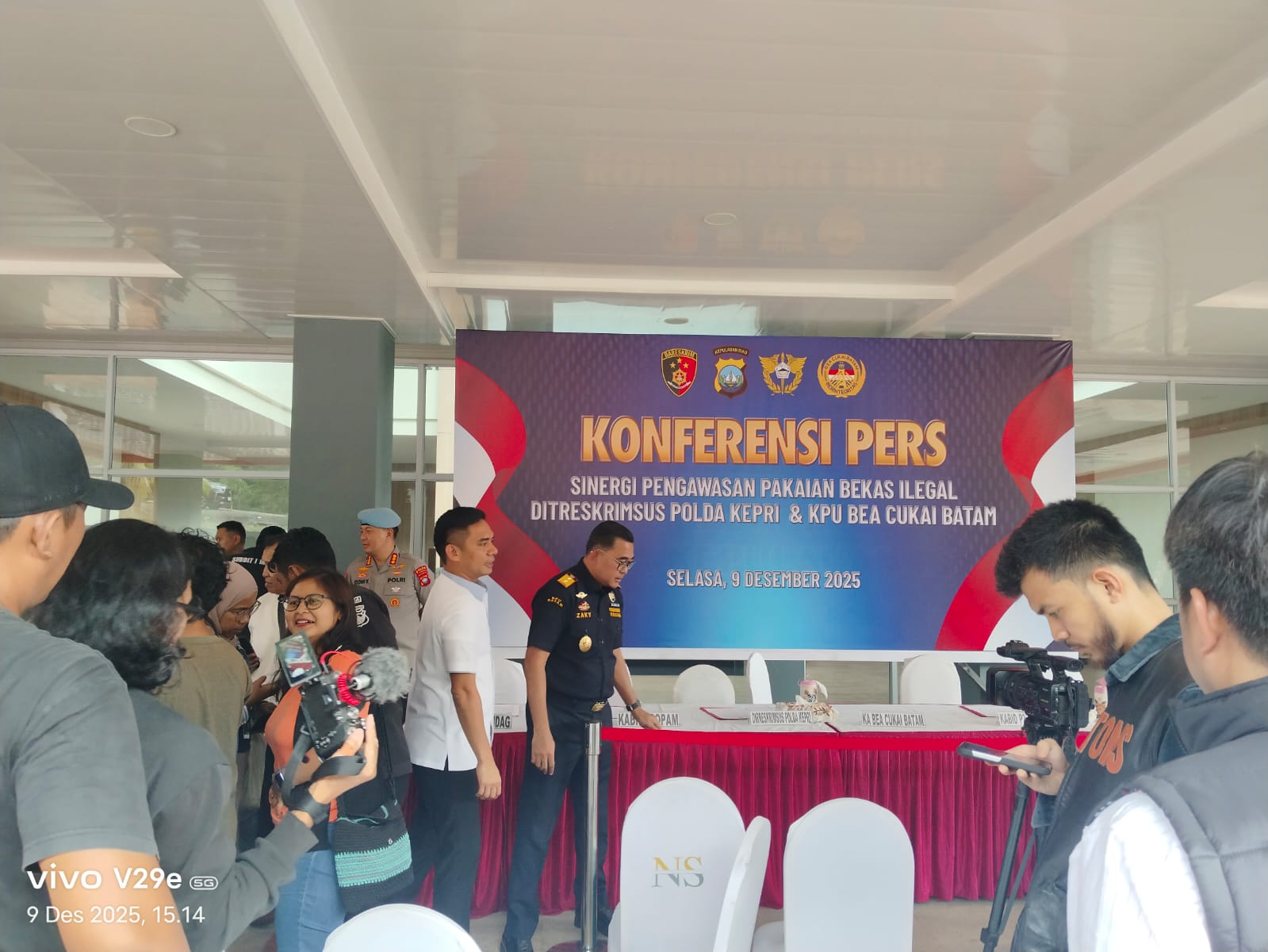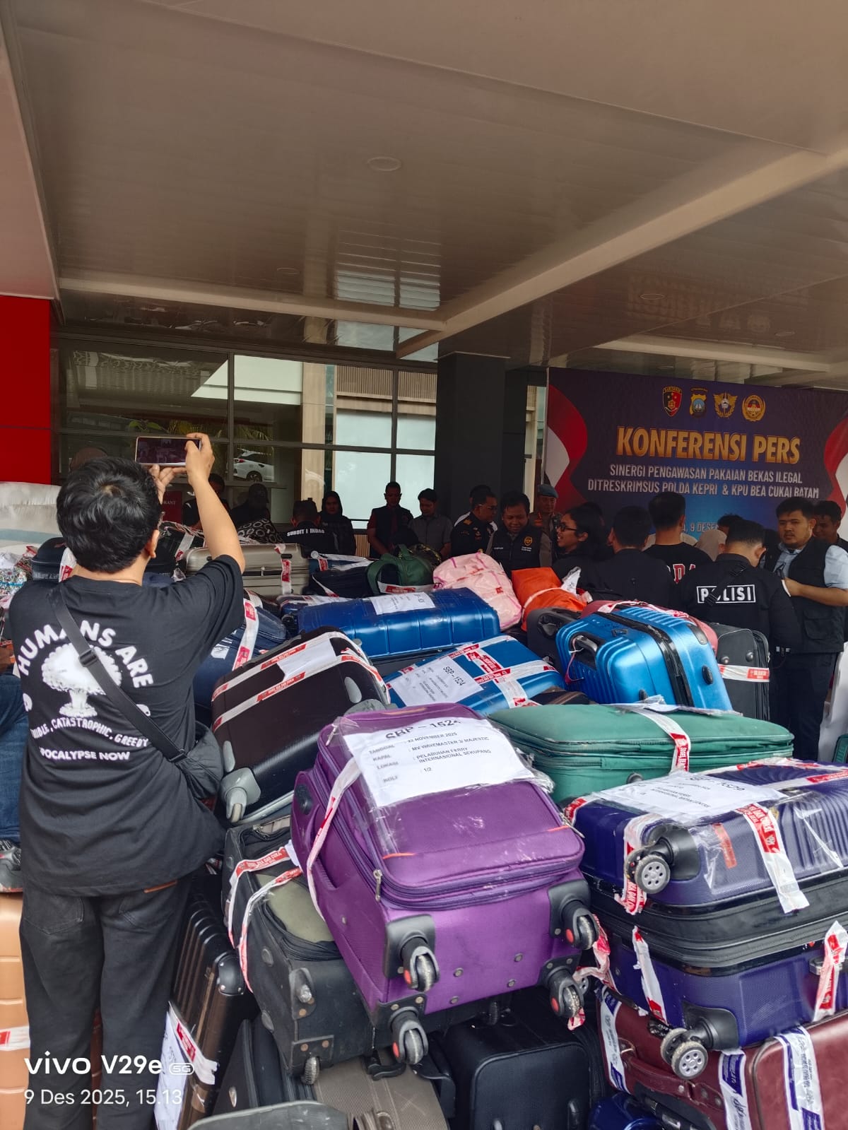 Dalam kesempatan tersebut, Dirreskrimsus Polda Kepri Kombes Pol. Silvester Mangombo Marusaha Simamora, S.I.K., M.H., menjelaskan bahwa Penindakan ini dilakukan di Pelabuhan Internasional Batam Center pada Minggu, 7 Desember 2025 sekitar pukul 13.30 WIB. Berawal dari informasi masyarakat mengenai adanya aktivitas pemasukan pakaian bekas melalui pelabuhan tersebut, Tim Subdit I Indagsi Ditreskrimsus Polda Kepri bersama Tim Bea Cukai Tipe B Batam melakukan penyelidikan dan pemeriksaan terhadap kendaraan roda empat jenis Daihatsu Grand Max warna silver dengan nomor polisi BP 1426 JO. Dalam kendaraan tersebut ditemukan barang bukti berupa 11 koper, 8 ransel, dan 20 karung sisa hasil penjualan, yang seluruhnya berisi pakaian dalam keadaan bekas. Barang-barang tersebut diketahui akan diperjualbelikan kembali untuk memperoleh keuntungan.