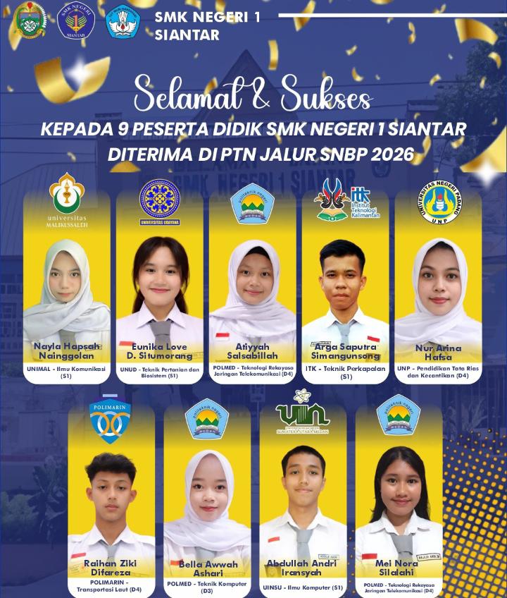 Moranews Simalungun — 9 Siswa SMK Negeri 1 Siantar Kabupaten Simalungun diterima di berbagai PTN setelah lulus SNBP