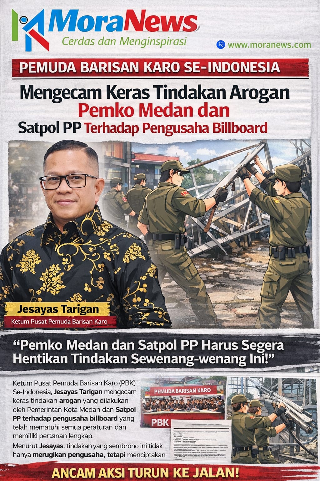 Moranews Medan – Dewan Pimpinan Pusat Pemuda Barisan Karo (PBK) Se-Indonesia mengecam keras tindakan yang dinilai arogan dan sewenang-wenang oleh Pemerintah Kota Medan bersama Satpol PP terhadap para pengusaha billboard yang telah memenuhi seluruh ketentuan perizinan.
