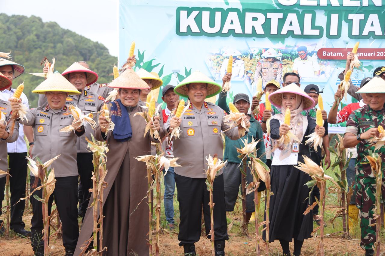 Moranws Batam – Dalam rangka mendukung program ketahanan pangan nasional serta implementasi Program Asta Cita Presiden dan Wakil Presiden Republik Indonesia, Polda Kepulauan Riau melaksanakan Panen Raya Jagung Serentak Kuartal I dalam rangka mendukung Swasembada Pangan Tahun 2026, yang digelar di Lahan Ketahanan Pangan Polda Kepri Teluk Mata Ikan, Kelurahan Sambau, Kecamatan Nongsa, Kota Batam, Kamis (8/1/2026).