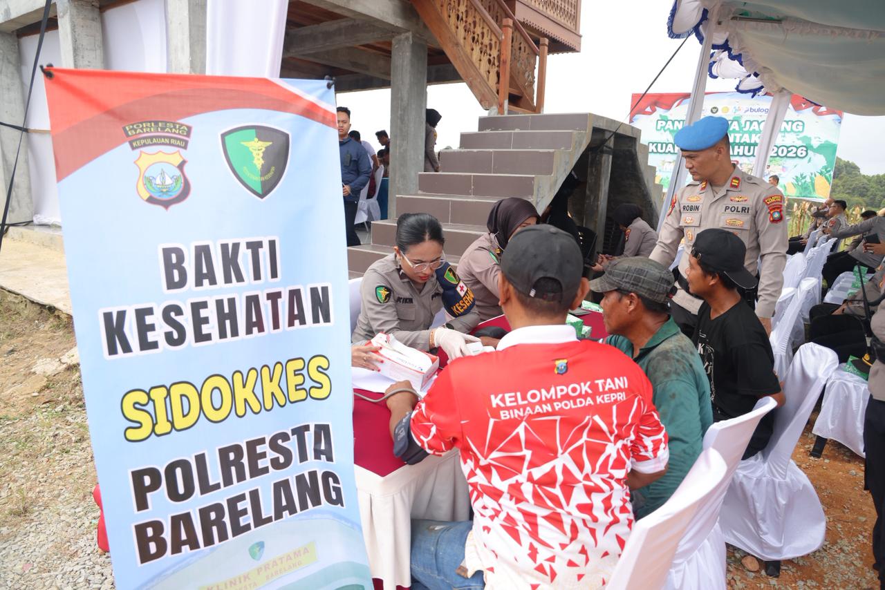 Selain kegiatan panen Raya jagung, Polda Kepri juga melaksanakan Bakti Kesehatan gratis kepada masyarakat sekitar yang diselenggarakan oleh Sidokkes Polresta Barelang.