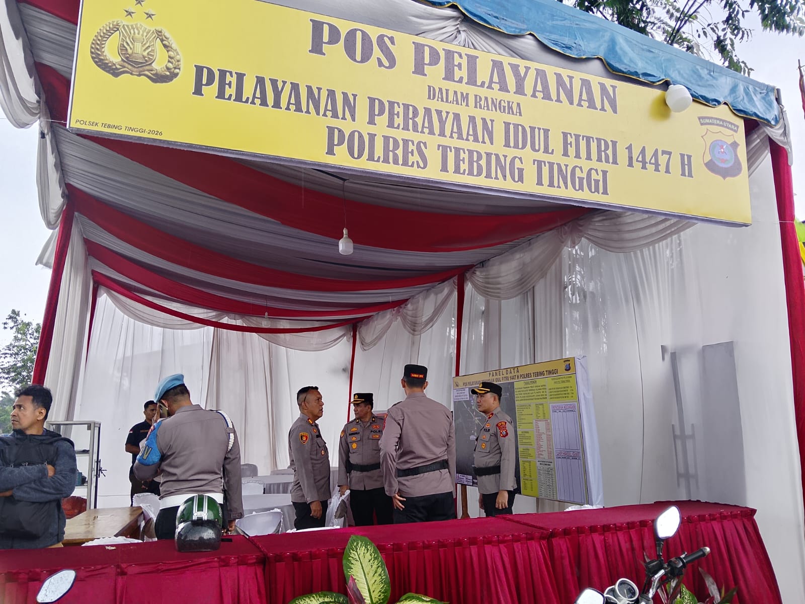 Dalam kegiatan tersebut, jajaran Polres Tebing Tinggi melakukan pengecekan terhadap Pos Pam dan Pos Yan yang telah didirikan diwilayah hukum Polres Tebing Tinggi.