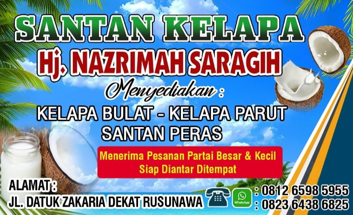 Moranews Tebingtinggi — Santan Kelapa Hj Nazrimah Saragih yang terletak di Jalan Datuk Zakaria Sei Sigiling Ujung dekat Rusunawa Kota Tebing Tinggi menyediakan santan Kelapa Hj Nazrimah Saragih
