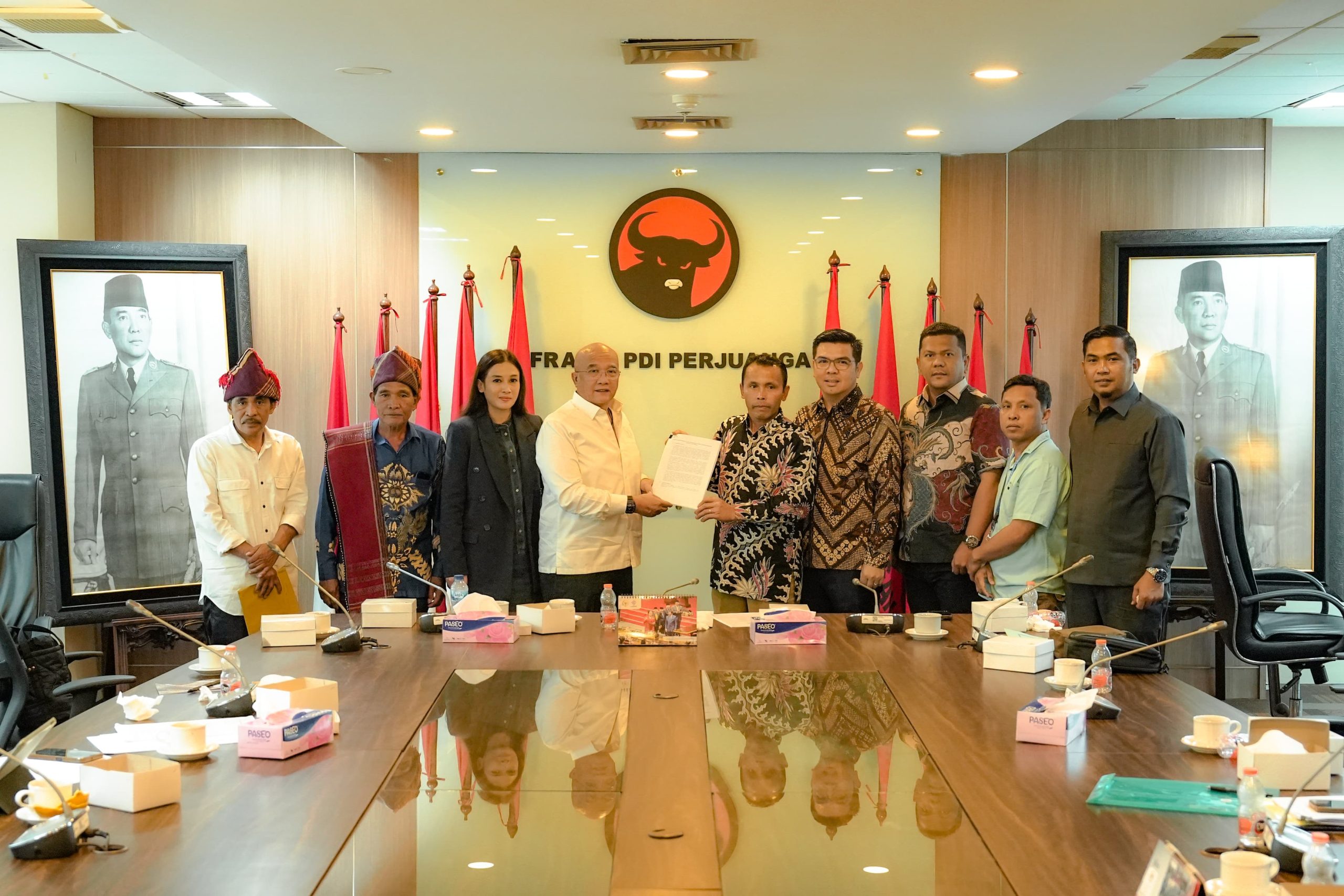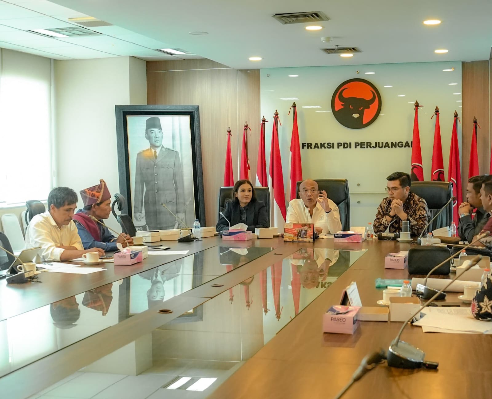 Moranews-Jakarta – Fraksi PDI Perjuangan DPR RI menerima audiensi sejumlah elemen masyarakat dari Desa Sihaporas, Kabupaten Simalungun, dan Parbuluan, Kabupaten Dairi, Sumatera Utara, di Ruang Fraksi PDIP DPR RI, Senayan, Jakarta. Audiensi ini membahas persoalan konflik lahan dan dugaan perusakan lingkungan yang melibatkan perusahaan PT Toba Pulp Lestari (TPL) dan PT Gruti.